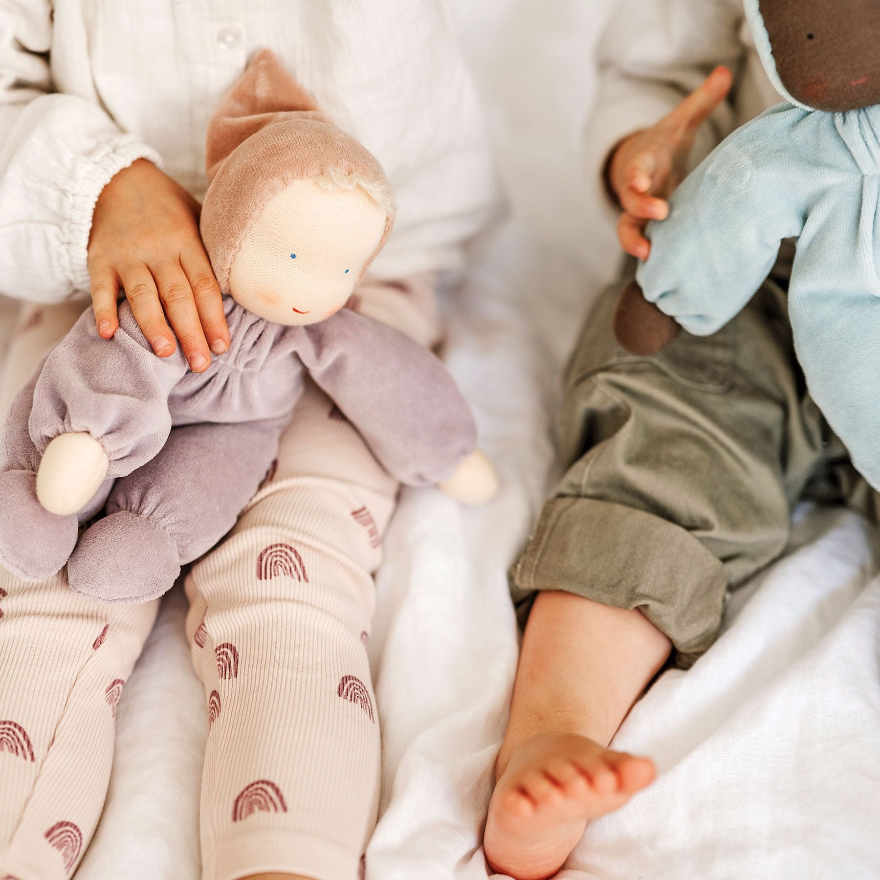 Zart, weich und geborgen – so fühlt sich dieses kleine Püppchen an, wenn es sich in Kinderarme schmiegt. Mit seiner samtigen Hülle aus Niki-Stoff und feiner Baumwolle schenkt es Trost, Wärme und ein Gefühl von Heimat – Tag für Tag, Nacht für Nacht.