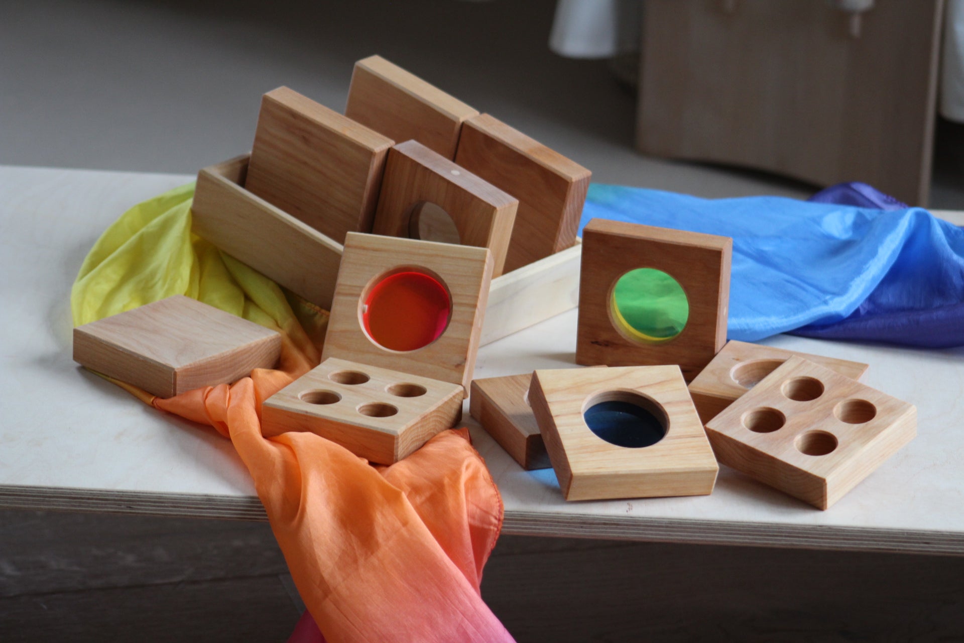 Die extragroßen Bauklötze bringen Spannung und optische Wahrnehmungseffekte in die Bauecke oder auf‘s Fensterbrett. Besonders für die Kleinen geeignet! Oder auch einfach durchschauen und staunen …