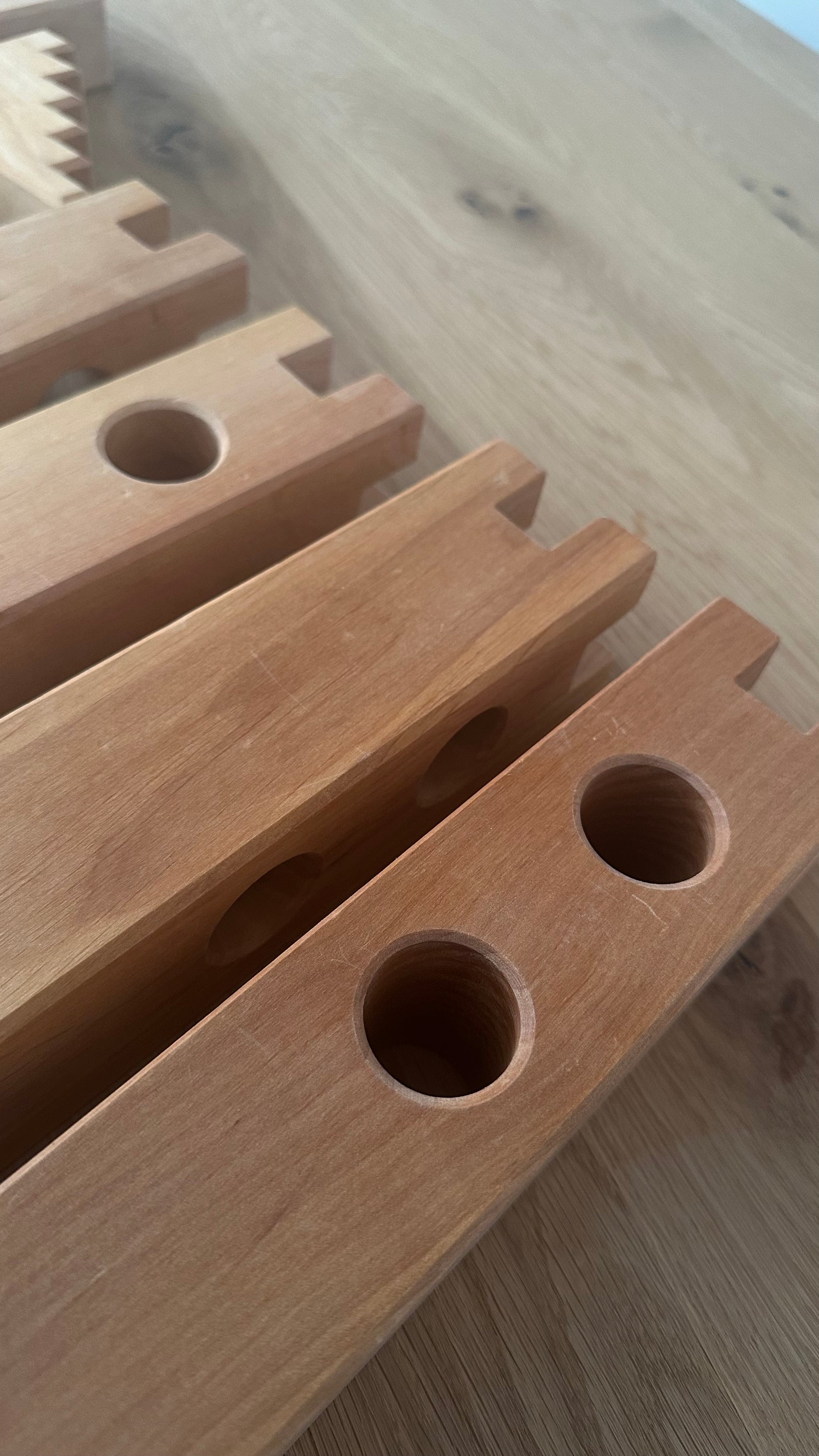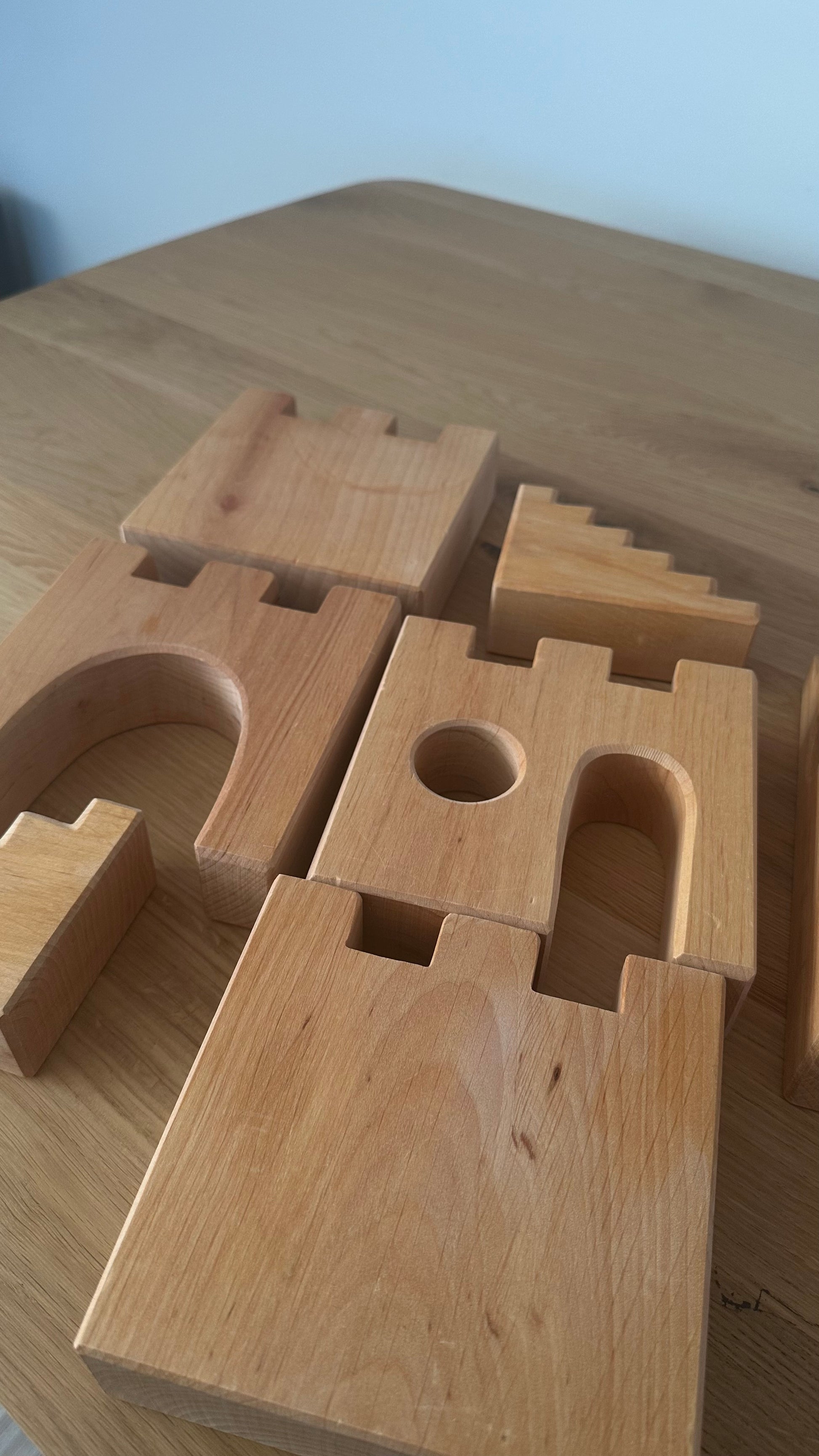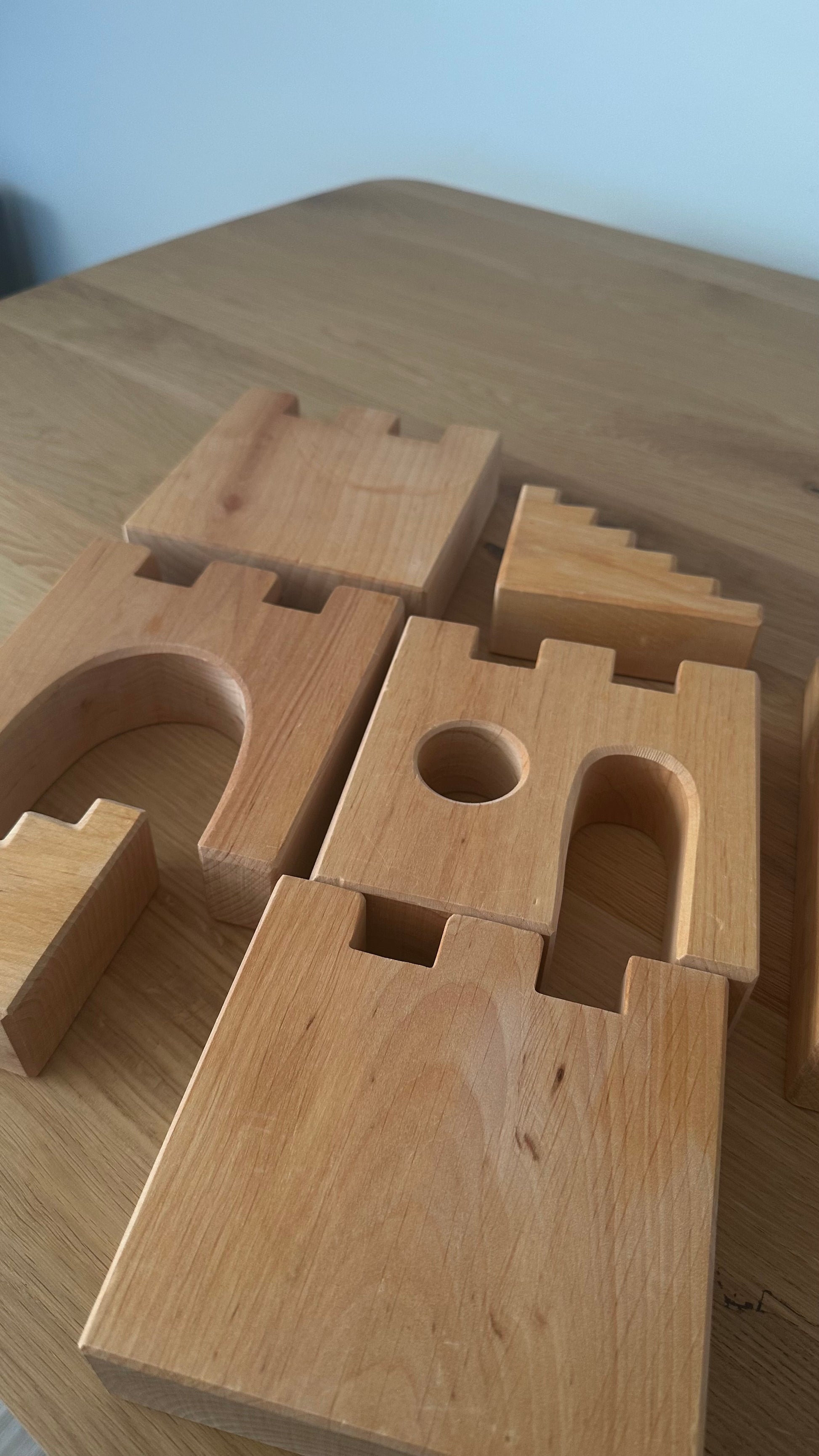 Tauchen Sie ein in die faszinierende Welt unserer Ritterburg, die aus 10 liebevoll gestalteten Teilen besteht und endlose Möglichkeiten für kreative Burganlagen bietet. Mit diesen wundervollen Bauteilen aus geöltem Erlenholz können Kinder ab 18 Monaten ihre eigene mittelalterliche Festung erschaffen, in der Abenteuer und Geschichten lebendig werden. Die edlen Türme, Torbogen, Treppen und Mauern lassen sich vielfältig kombinieren und ermöglichen e, eine majestätische Burglandschaft zu bauen.